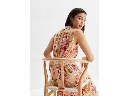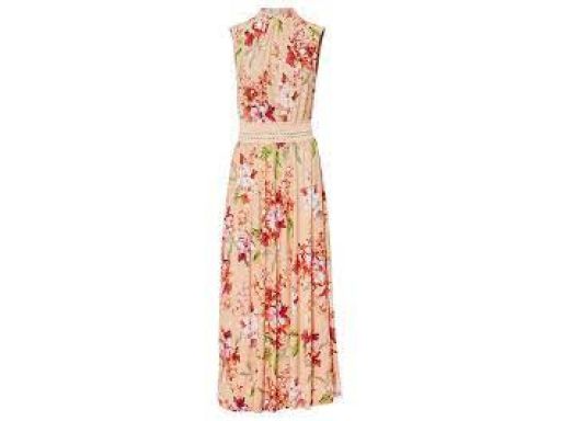 B.P.C długa sukienka beżowa w kwiaty z ażurową koronką ^40/42