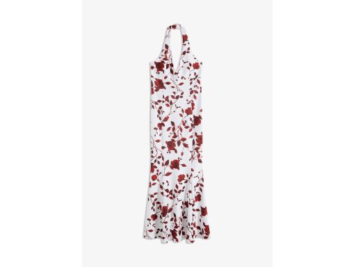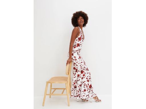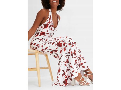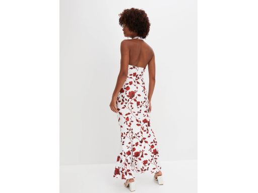 B.P.C długa sukienka biała w bordowe kwiaty z dekoltem halter ^48/50