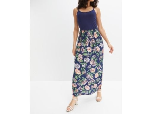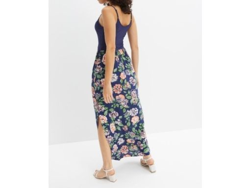 B.P.C długa sukienka granatowa w kolorowe kwiaty r.40/42