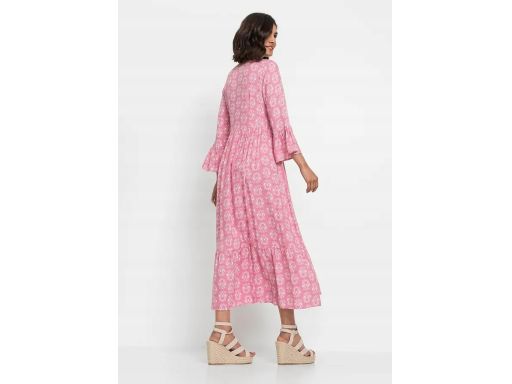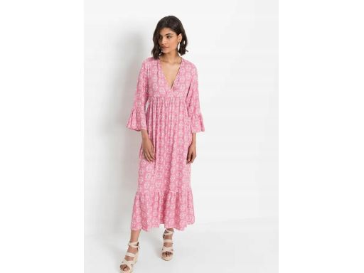 B.P.C długa sukienka kaftanowa różowa w białe wzory 44.