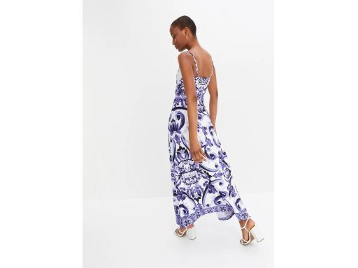 B.P.C długa sukienka letnia biała w niebieskie wzory 36/38.