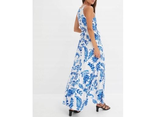 B.P.C długa sukienka letnia biała w niebieskie wzory 50.
