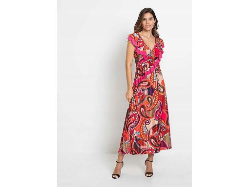 B.P.C długa sukienka maxi kolorowa z falbaną 36/38.
