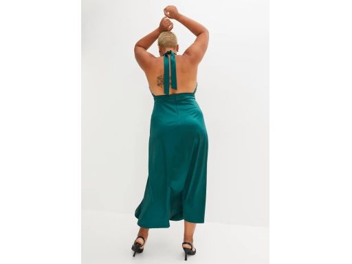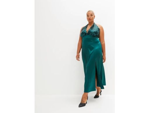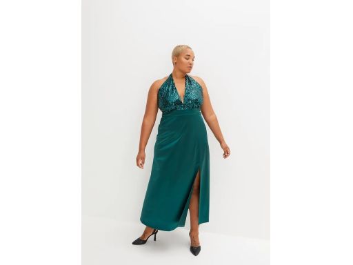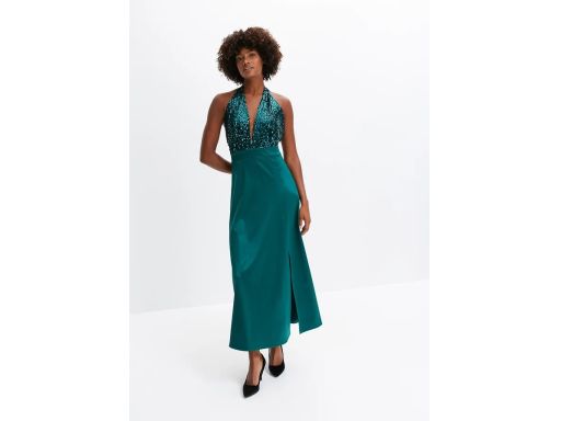 B.P.C długa sukienka satynowa butelkowa zieleń z cekinami 36/38.