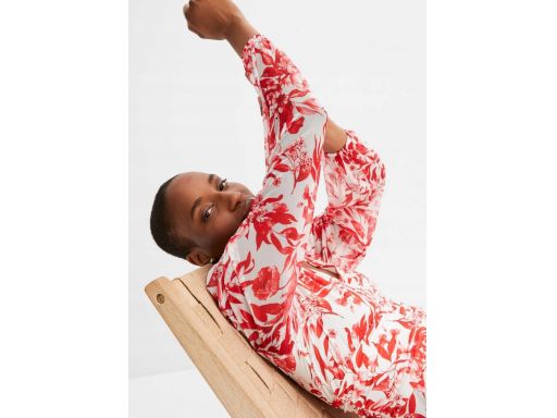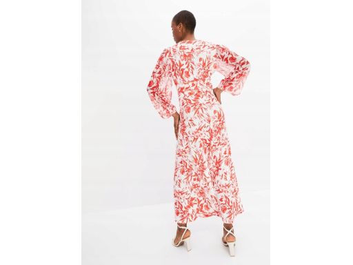 B.P.C długa sukienka śmietankowa w czerwone wzory ^44/46