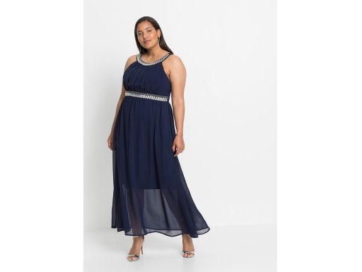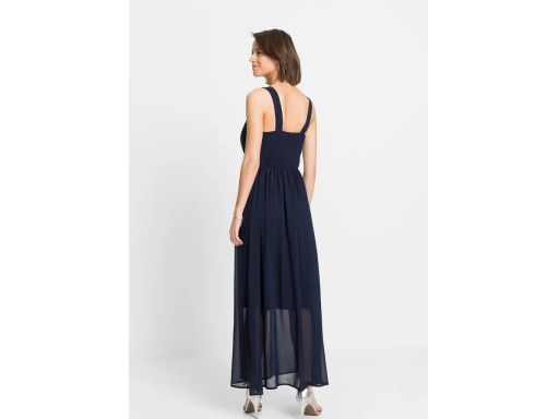 B.P.C długa sukienka szyfonowa granatowa z aplikacją ^40