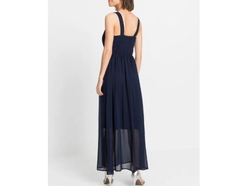 B.P.C długa sukienka szyfonowa granatowa z aplikacją r.40