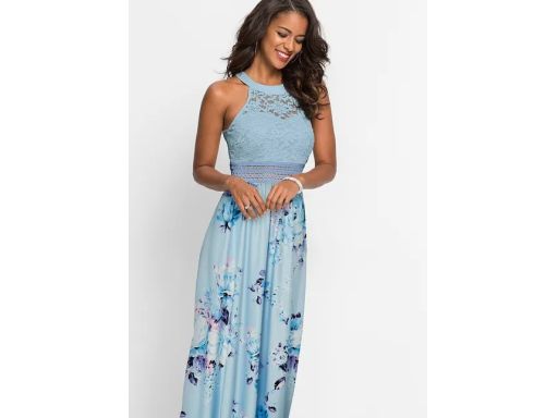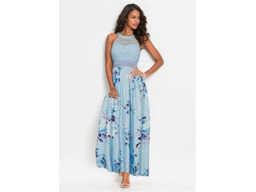 B.P.C długa sukienka w kwiaty z koronką niebieska r.46