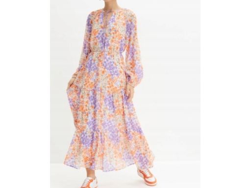 B.P.C długa sukienka w kwiaty z wiązaniem szyfon ^52
