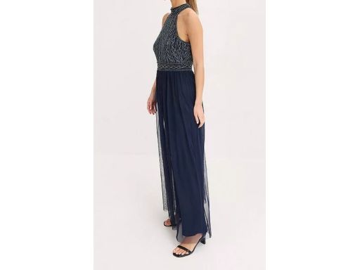 B.P.C długa sukienka wieczorowa granatowa z koralikami ^44