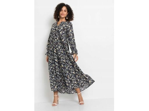 B.P.C długa sukienka wiskozowa granatowa we wzory 38.
