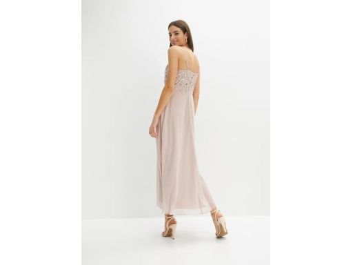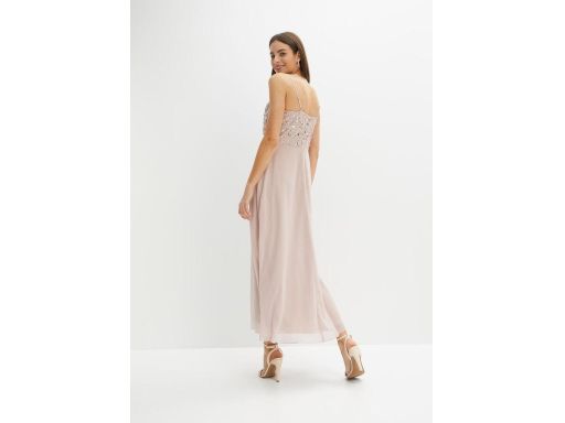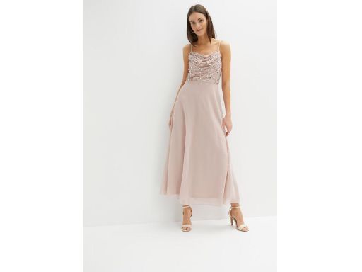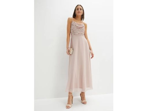 B.P.C długa sukienka z cekinami brudno różowa na ramiączka 36.