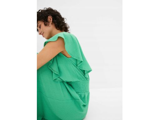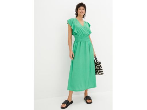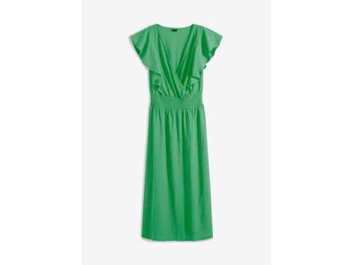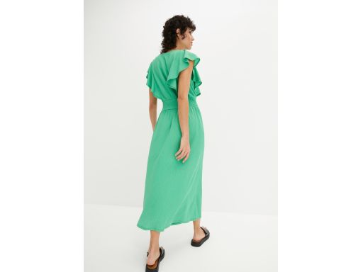 B.P.C. długa sukienka zielona krepowana z falbanką ^36/38