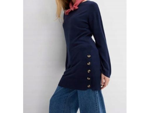 B.P.C długi sweter granatowy z guzikami 40/42.