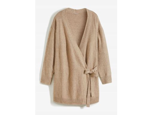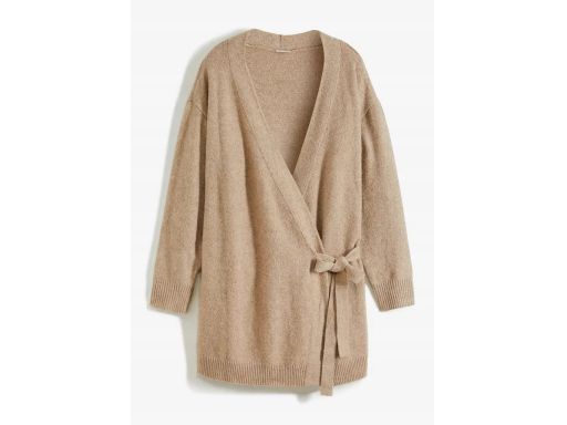 B.P.C długi sweter kopertowy wiązany beżowo-szary melanż 36/38.
