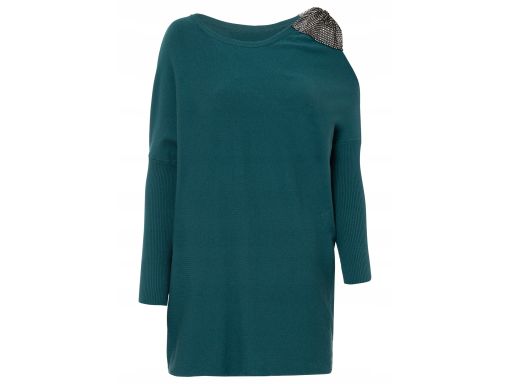 B.P.C długi sweter zielony z aplikacją 48/50.