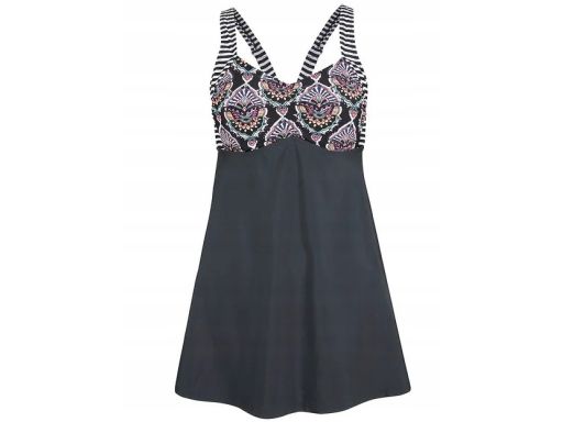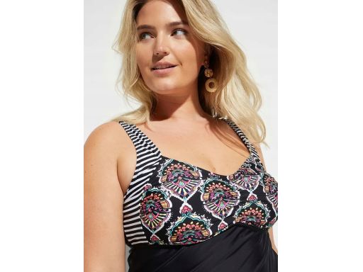 B.P.C Długie tankini czarne w kolorowe wzory z figami wysoki stan ^48