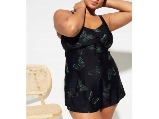 B.P.C długie tankini czarne w motyle z czarnymi figami r.58