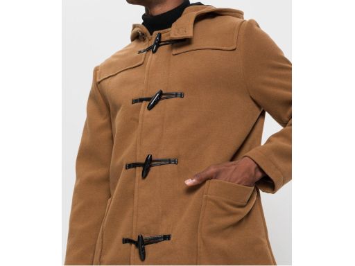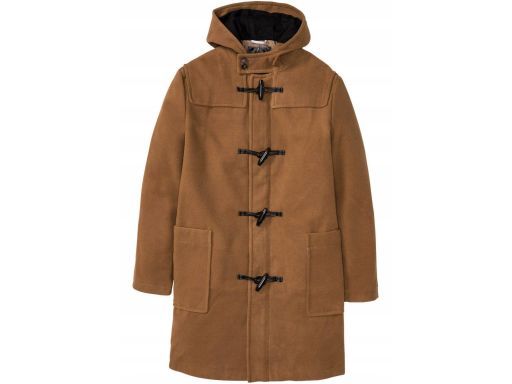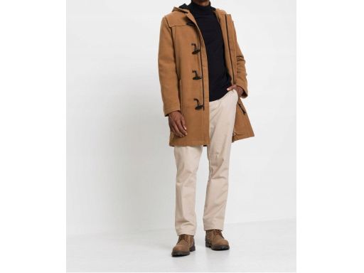 B.P.C dłuższy męski płaszcz flauszowy karmelowy z kapturem 60