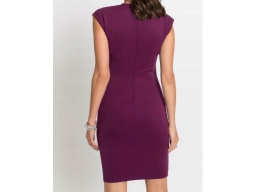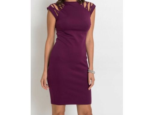 B.P.C dopasowana sukienka haft laserowy śliwkowa 40/42.