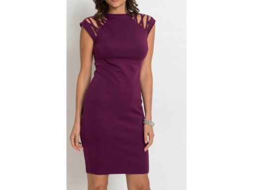 B.P.C dopasowana sukienka haft laserowy śliwkowa 44/46.