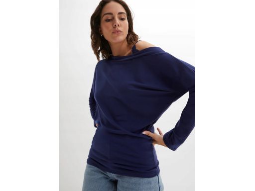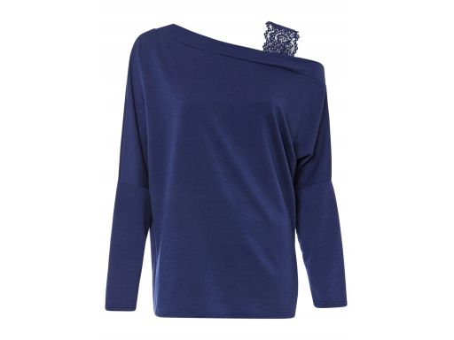 B.P.C dresowa bluzka granatowa z koronką i asymetrycznym dekoltem ^40/