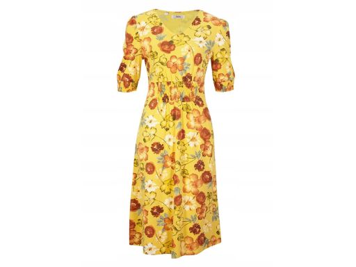 B.P.C dżersejowa żółta sukienka w kwiaty 48/50.