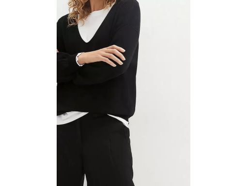 B.P.C dzianinowy czarny sweterek w serek 52/54.