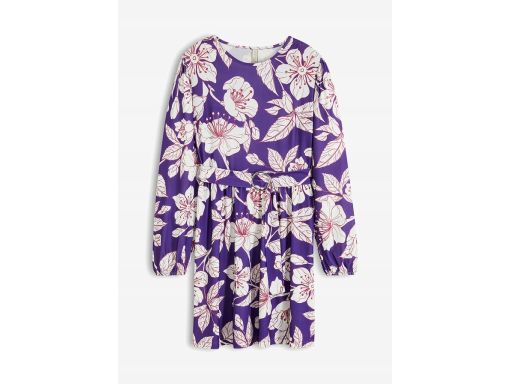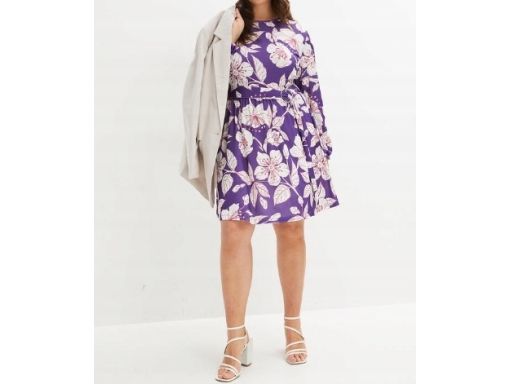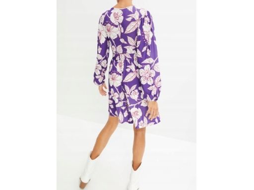 B.P.C fioletowa sukienka w białe kwiaty z paskiem r.44/46