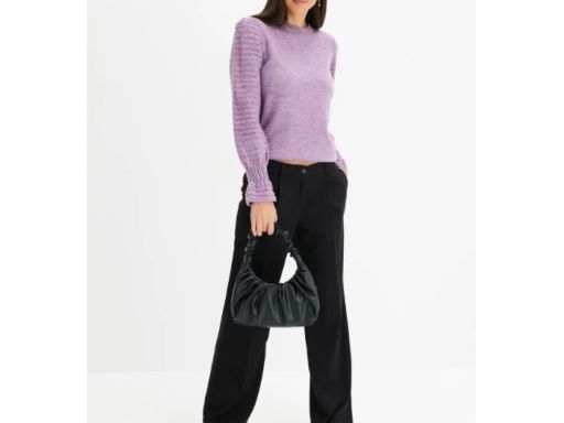 B.P.C fioletowy sweter z falbankami na rękawach 36/38.