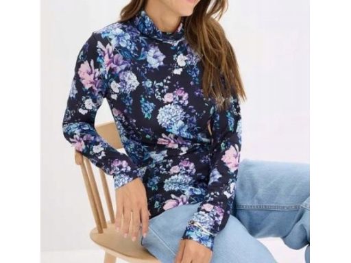 B.P.C golf granatowy w kwiaty z wiskozy 52/54.Golf z kolekcji B.P.C