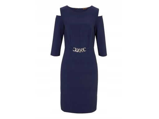 B.P.C granatowa sukienka z dekoracyjnym łańcuszkiem Premium 40.