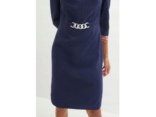 B.P.C granatowa sukienka z dekoracyjnym łańcuszkiem Premium r.44