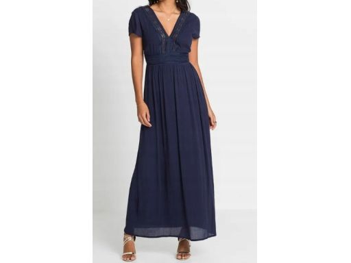 B.P.C granatowa sukienka z wiskozy z koronką długa 38.