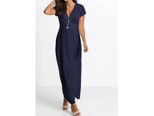 B.P.C granatowa sukienka z wiskozy z koronką długa ^42