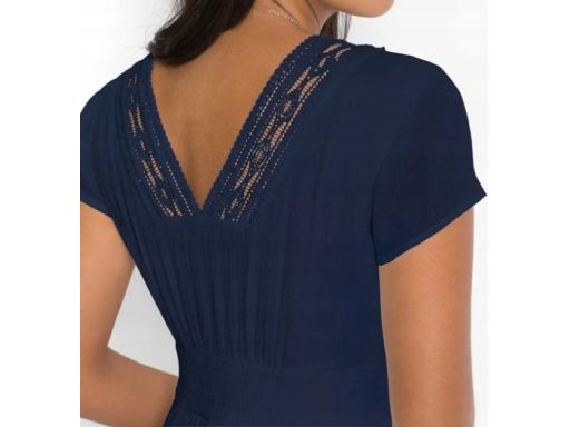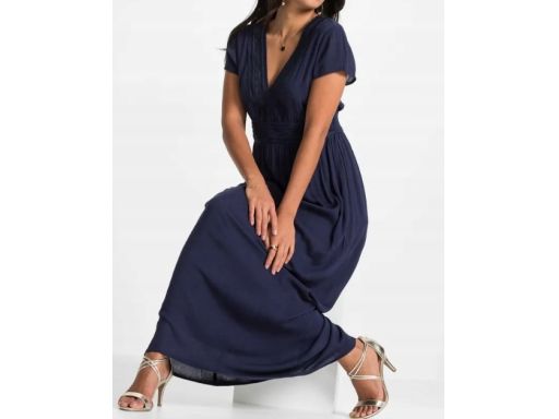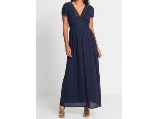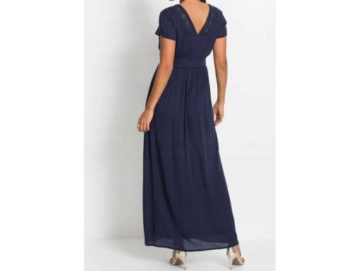 B.P.C granatowa sukienka z wiskozy z koronką długa r.40