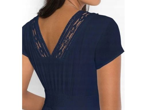 B.P.C granatowa sukienka z wiskozy z koronką długa r.42