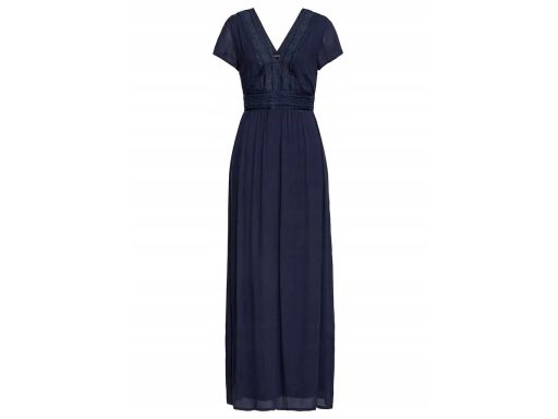 B.P.C granatowa sukienka z wiskozy z koronką długa r.46