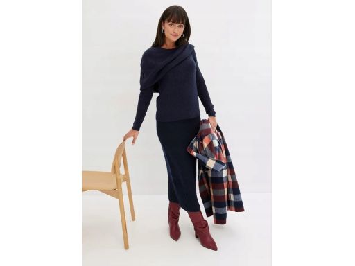 B.P.C granatowy sweter z kołnierzem do noszenia na różne sposoby ^48/5