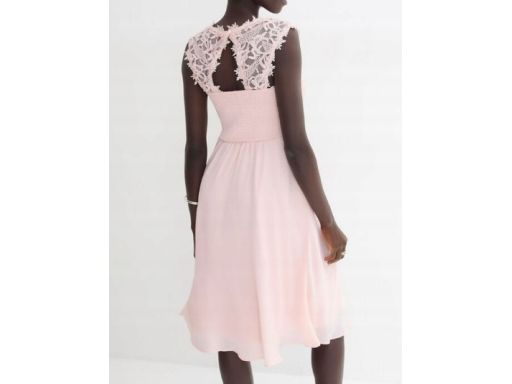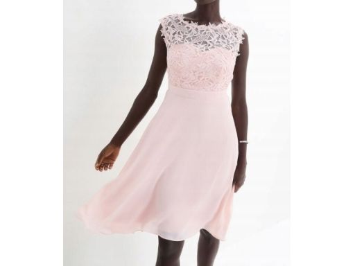 B.P.C jasnoróżowa sukienka z koronką szyfonowa PREMIUM ^50