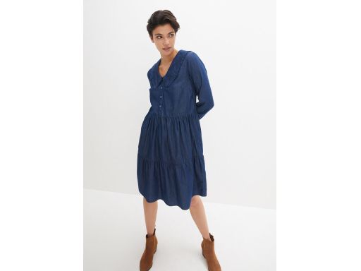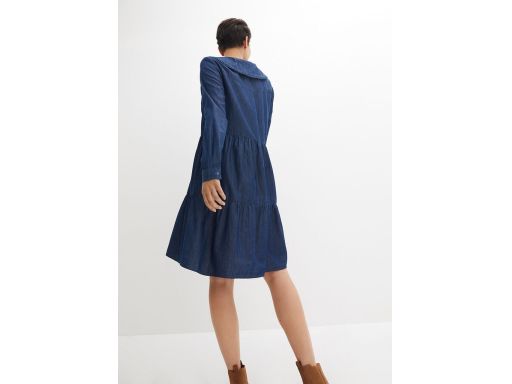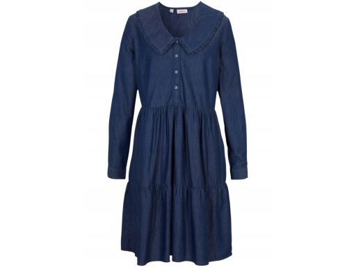 B.P.C jeansowa sukienka z kołnierzykiem i z falbanami 44.