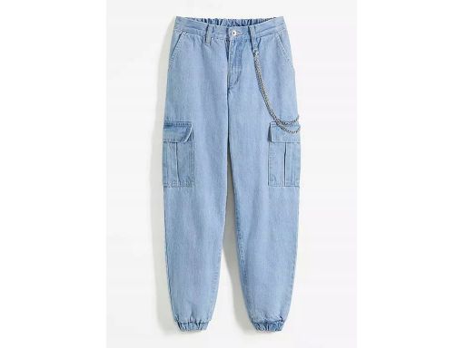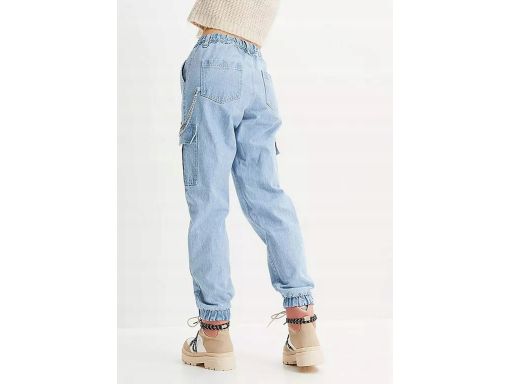 B.P.C Jeansy bojówki ze stretchem niebieskie z łańcuszkiem ^38
