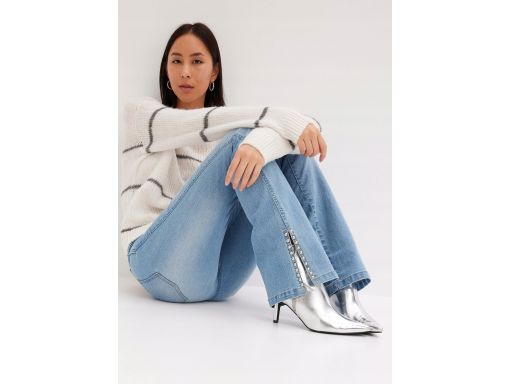 - Rozcięcie na dole nogawek zdobione dżetami