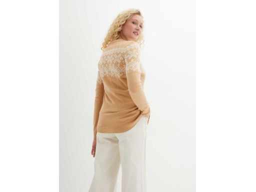 - Beżowy w biały wzór norweski
