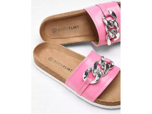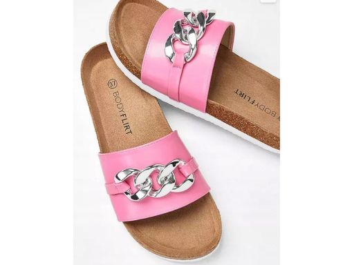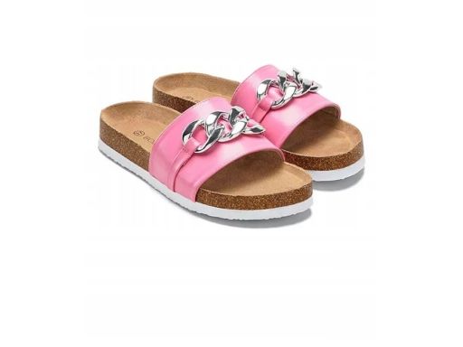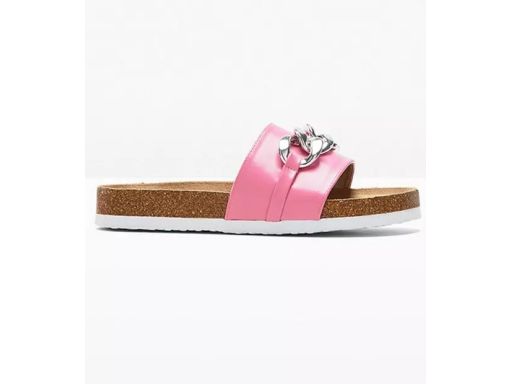 B.P.C klapki na korku różowe ze srebrnym łańcuchem 40.
