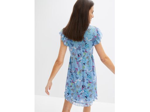 - zdobiona falbaną przy dekolcie i na dole