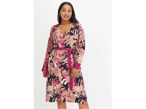 B.P.C kolorowa sukienka we wzory midi z wiązaniem r.36/38