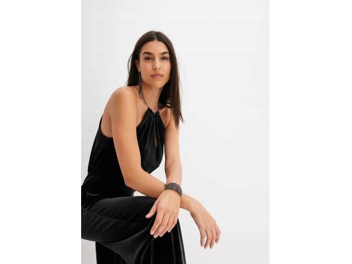 B.P.C kombinezon aksamitny czarny z ozdobnym łańcuszkiem ^52/54