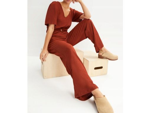 B.P.C kombinezon brązowy letni z wycięciami i marszczeniami 40/42.