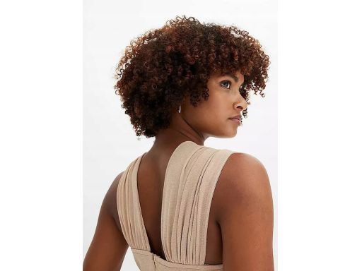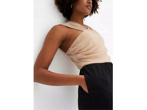 - góra beżowa z asymetrycznymi ramiączkami